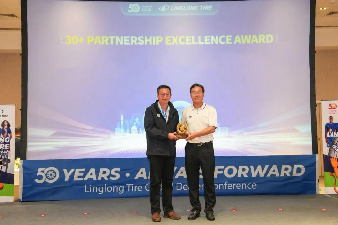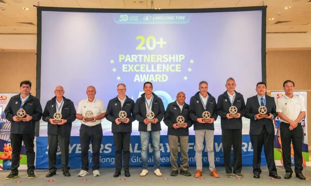 庆典期间,玲珑为来自全球渠道伙伴颁发“锐进伙伴奖”“渠道拓展奖”“臻品引领奖”“同心共赢奖”四大奖项,致敬那些与玲珑并肩作战、开拓市场的合作伙伴。王锋董事长表示:“中国有句古语:协力山成玉,同心土变金。玲珑轮胎一路走来离不开众多伙伴的鼎力相助,你们是玲珑最宝贵的财富。”