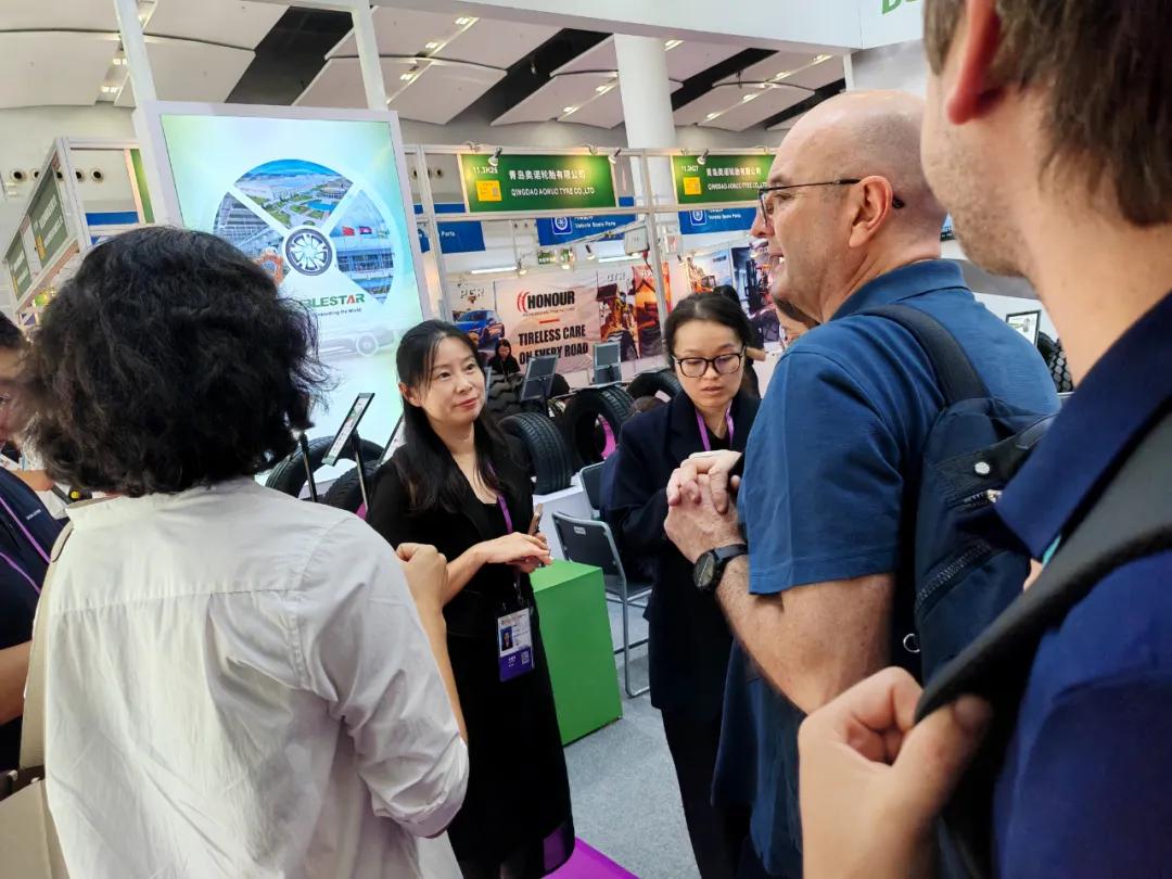 - 还有更多产品充分展示了双星品牌不断创造客户需求,满足客户需求,对市场与用户需求的深入探索。 - 现场,双星海外专业团队为到访的伙伴细致讲解产品的卓越性能,更针对不同地区市场的具体需求,提供高差异化的解决方案,团队的专业素质赢得了大量称赞,许多客户表达了明确的合作意向,期待能够与双星携手共赢。