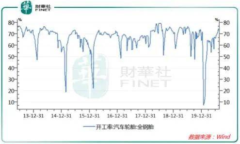 因疫情叠加春节因素,我国汽车全钢胎开工率在今年1月底降至历史低点,最低为7.23%,随后开工率提升,3月中旬-6月下旬开工率在60%之间,7月起稳步回升,目前达到了70%以上的开工率。
