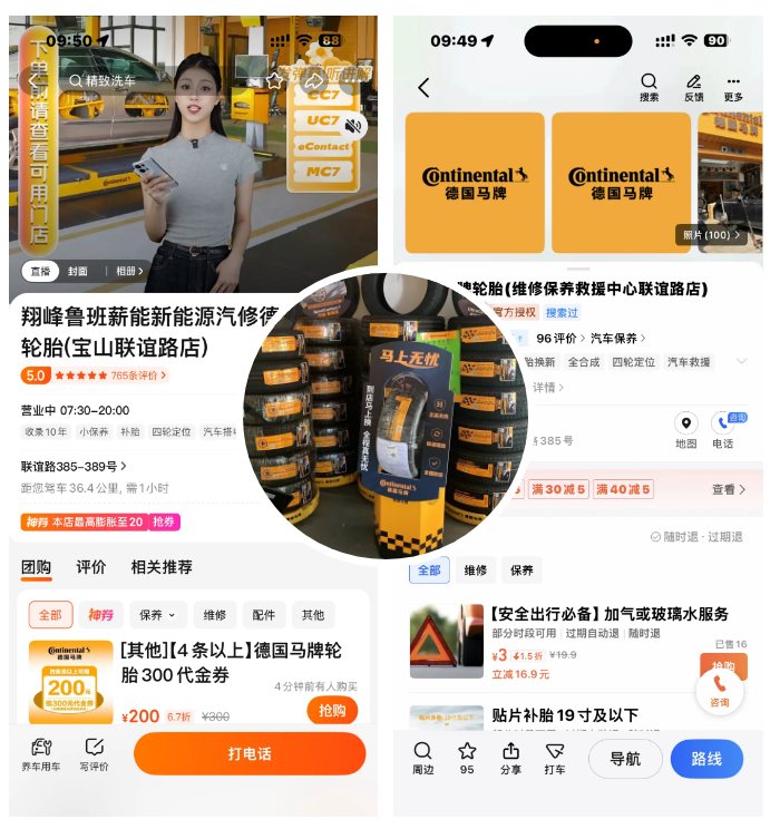 2021年起,德国马牌升级O2O 2.0模式,携手本地化、社交化平台,实现“线上引流+线下服务”深度融合,成为行业首家与高德、百度地图合作的轮胎品牌,通过导航入口精准引流。同时,德国马牌结合门店的服务能力同步上线补胎、道路救援等应急服务,以此保障消费者出行安全。