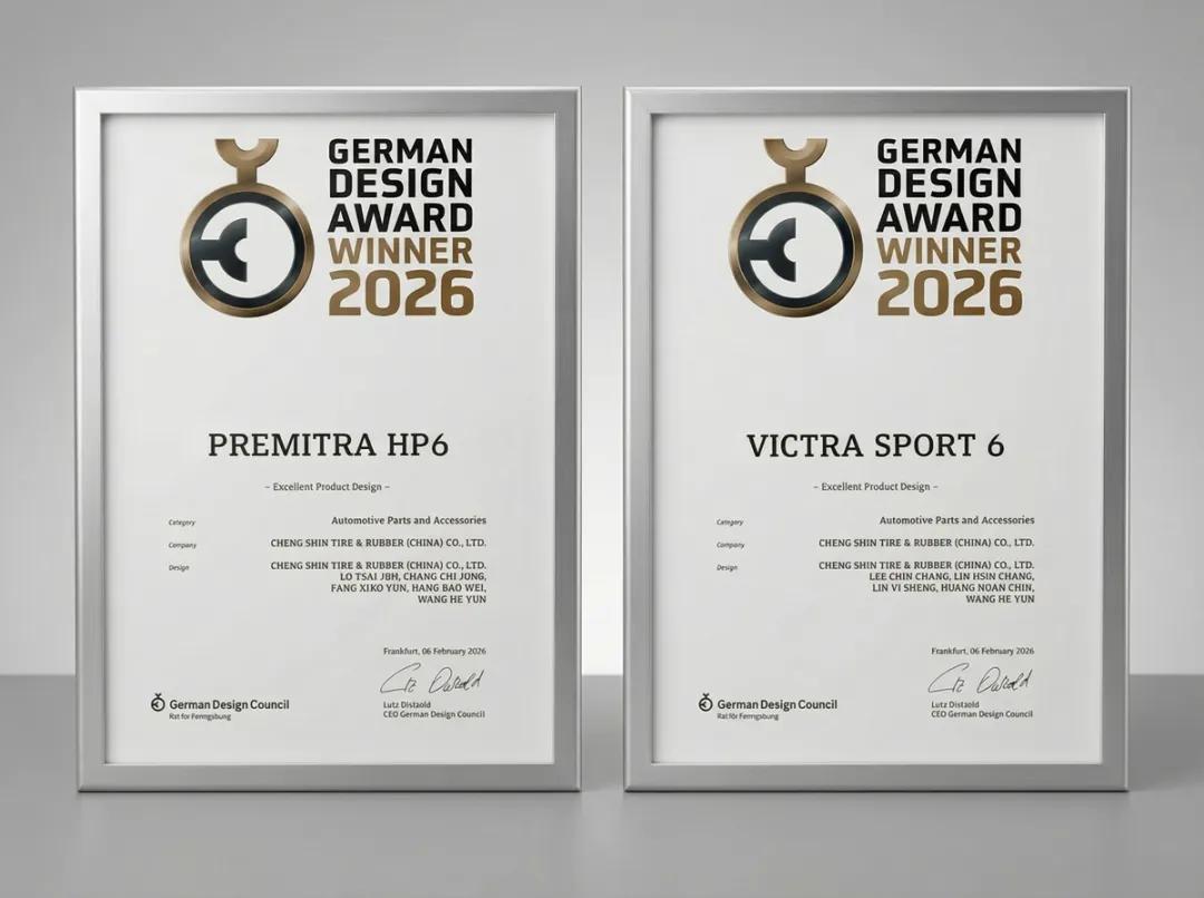 近日,全球设计界大奖——2026年度德国设计奖(German Design Award)评选结果正式揭晓。玛吉斯轮胎凭借深厚的设计积淀与前沿的技术创新,旗下两款战略级新品VICTRA SPORT 6(VS6)与PREMITRA HP6(HP6)从全球众多顶尖作品中脱颖而出,双双摘得这一重量级殊荣,用实力诠释中国轮胎品牌的设计底气与全球竞争力,书写“设计+技术”双驱动的全新篇章。